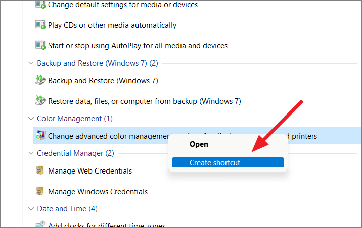 For tools or settings you frequently use, you can create desktop shortcuts for even quicker access. To do this, right-click on the desired entry and select 'Create shortcut'.
