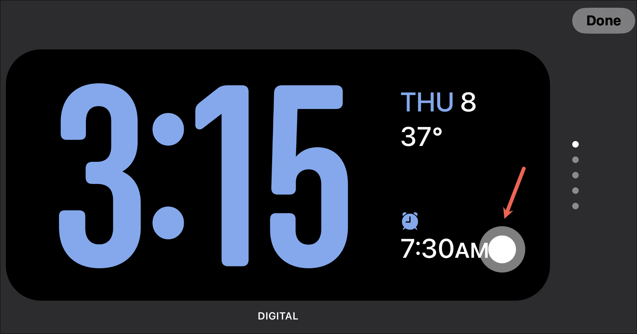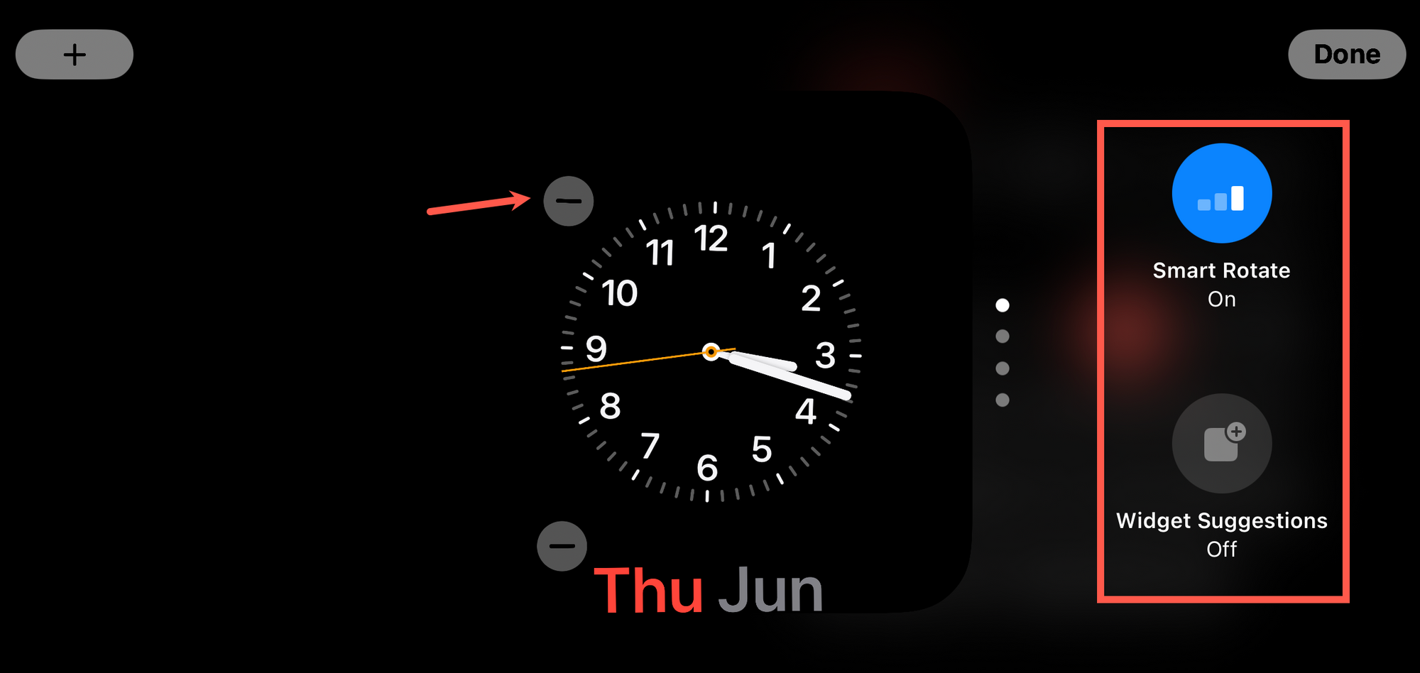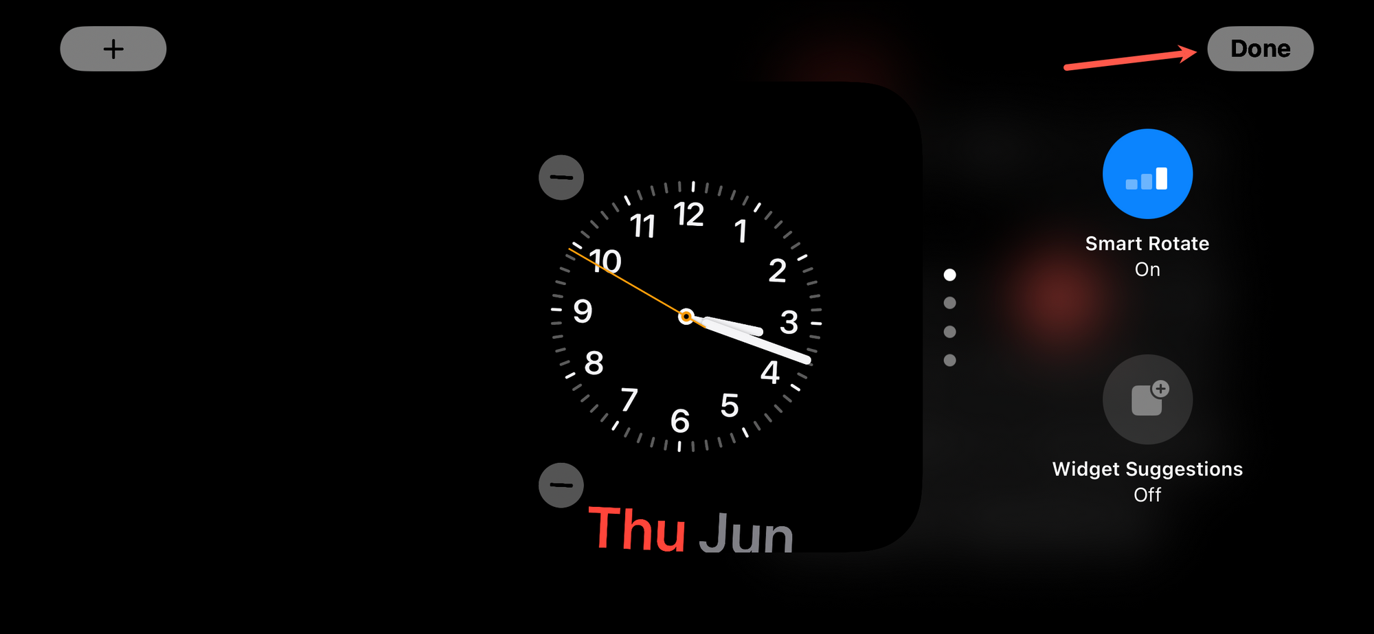 Tap 'Done' to exit the Widget Editing screen.