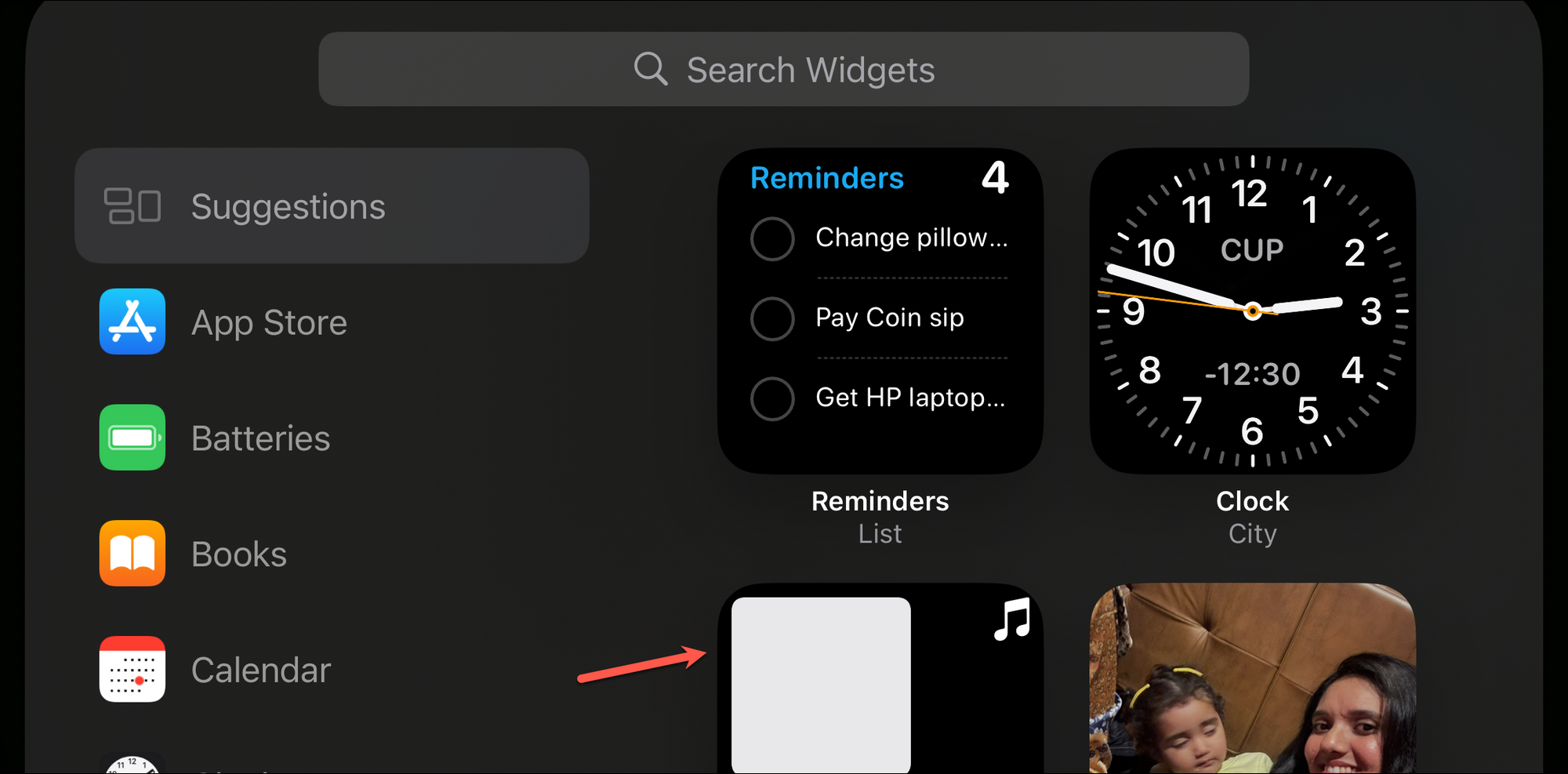 Similarly, on the Widgets screen, you can swipe up on the widget to view another.