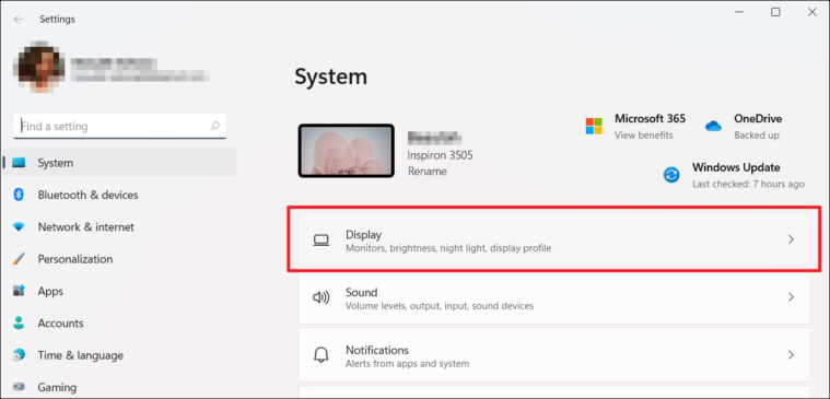- In the Settings window, make sure you're on the System tab, then click on Display.