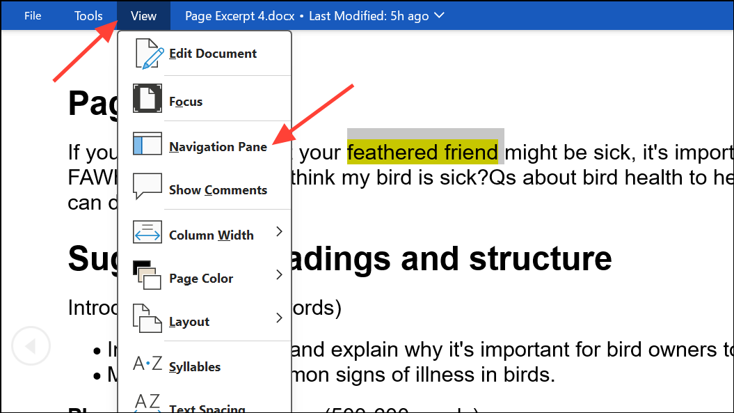 - Open the Navigation Pane from the View tab to quickly jump to different sections of your document.