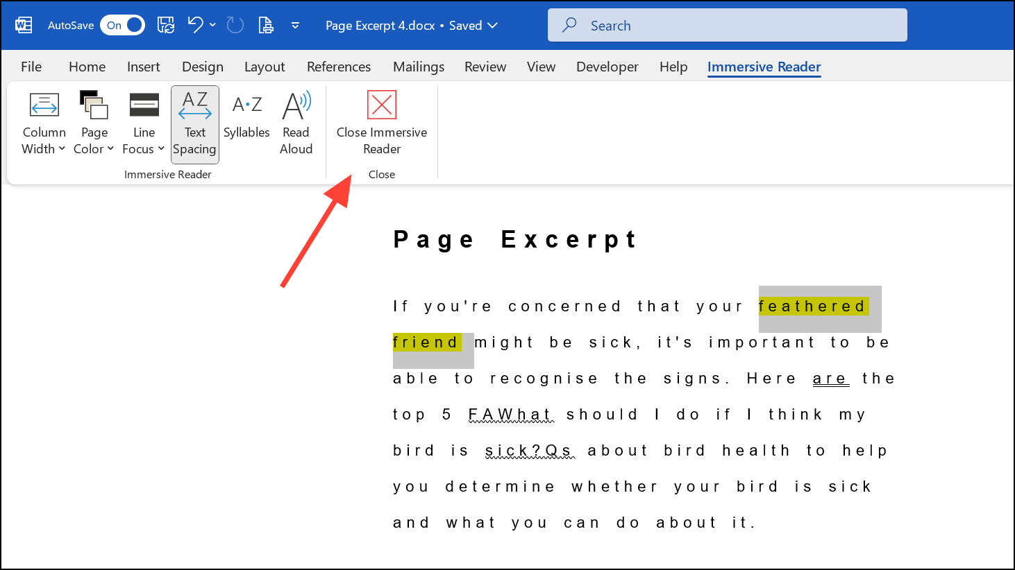 To exit Immersive Reader, select the Close Immersive Reader button or press Esc on your keyboard.