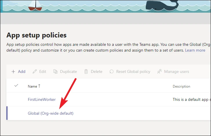 Click the policy where you want to add the feature. If you want to add it to a custom policy, select that policy. To add it for the whole organization, click the option for ‘Global (Org-Wide Default)’.