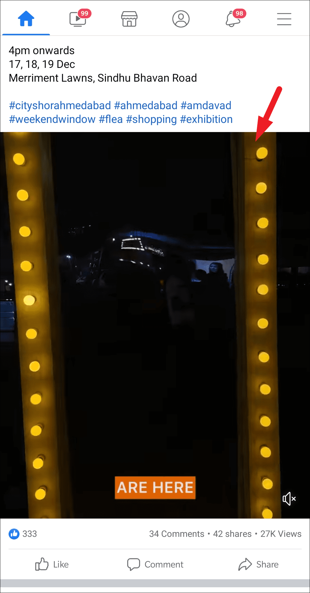 In the Facebook app on your mobile, tap on the video present in your Home Feed to get access to video controls.