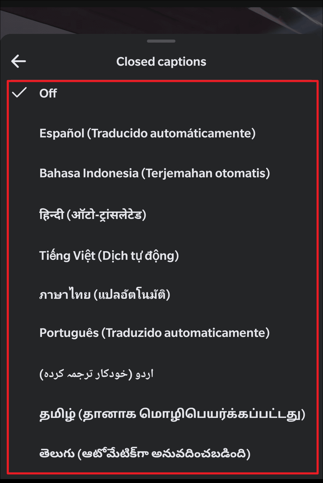 Then, tap on the ‘Closed Captions’ option from the list to proceed.