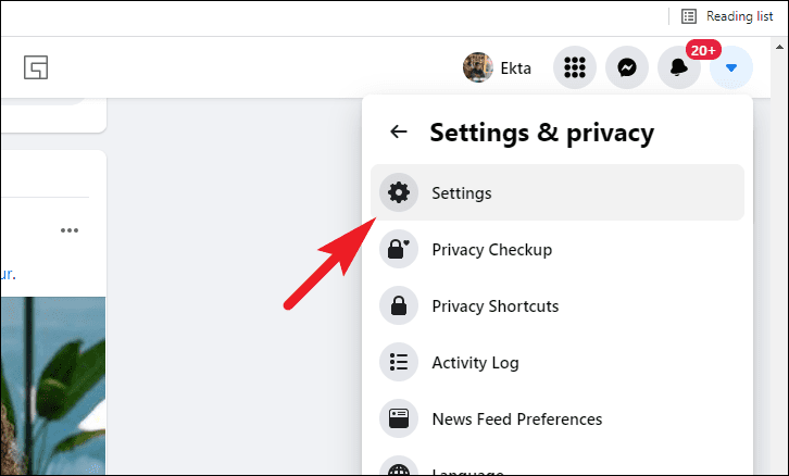 Then, under the ‘Settings & privacy’ menu again click on the ‘Settings’ option to proceed. This will redirect you to the ‘Settings’ webpage.