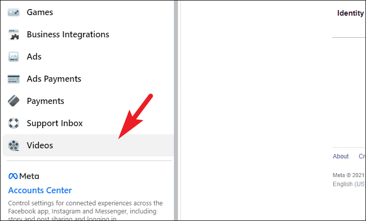 Now, on the ‘Settings’ webpage, scroll down to locate the ‘Videos’ option on the left sidebar and click on it to open video settings.