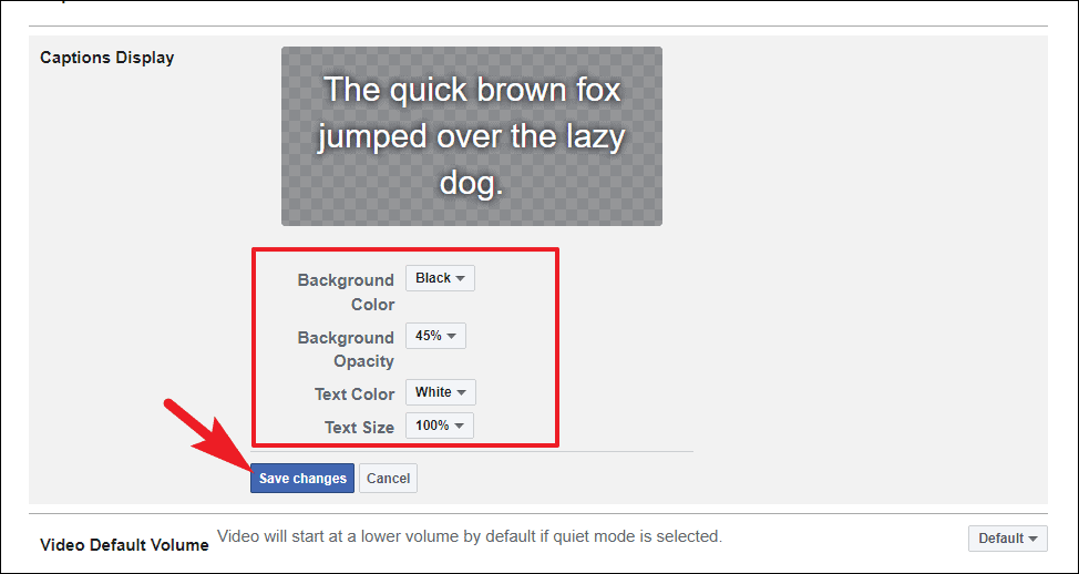 You can then change the text size, background color, text color, text size, and even the background opacity to your liking. Once set as per your preferences, click on the ‘Save changes’ button to apply the changes made.
