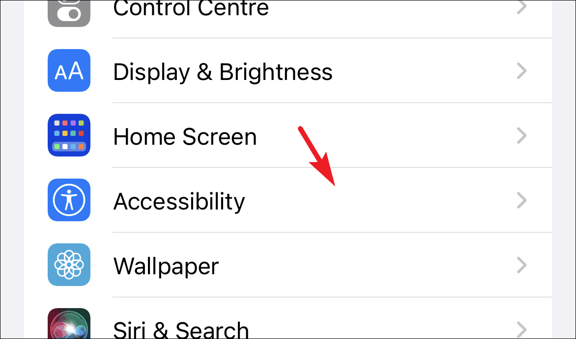 Then, tap on the ‘Accessibility’ tab present on the ‘Settings’ screen.