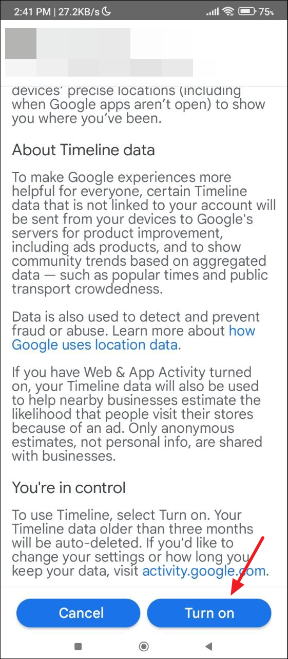 - When you turn on cloud backup for your Timeline, it will be backed up to Google services over Wi-Fi when your device is idle or charging. Make sure to turn off the auto-delete activity option from the same page after enabling cloud backup.