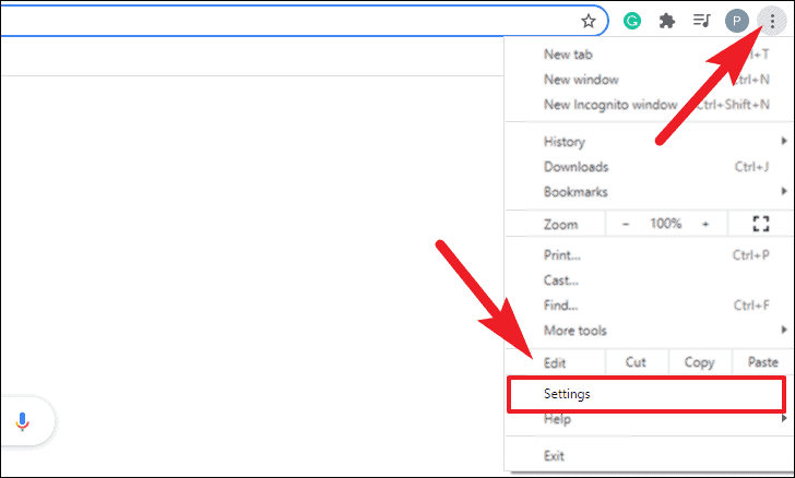 Next, click on the kebab menu (three vertical dots) present on the top right corner of the screen and choose the ‘Settings’ option from the overlay menu. This will open a separate ‘Settings’ tab on your browser.
