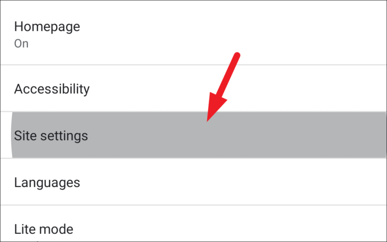 Then, scroll down to the ‘Advanced’ section and locate the ‘Site settings’ option, and tap on it.