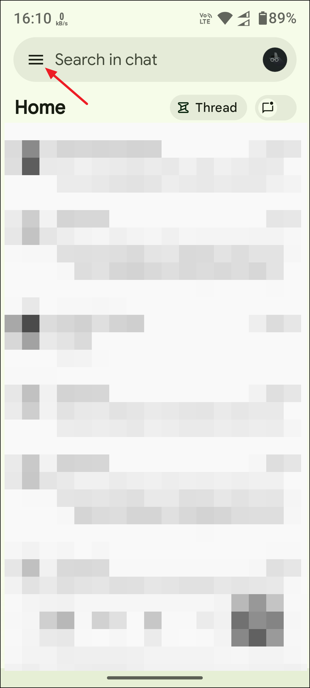 Step 2: Tap the Menu icon (three horizontal lines or your profile picture) in the top left corner to open the app menu.