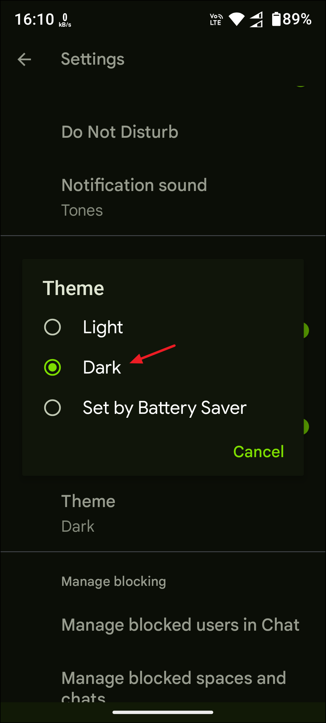 Enable Dark Mode in Google Chat on Android Devices