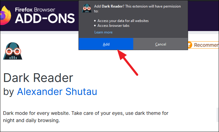 Step 4: Click on 'Add to Firefox' to install the extension.
