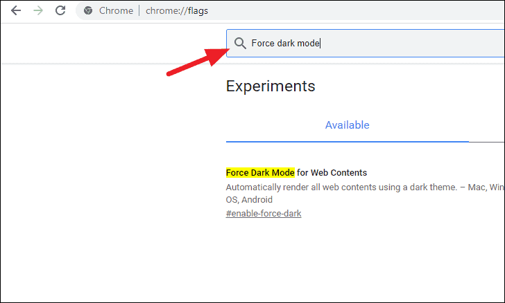 Step 2: In the search box at the top, type 'Force dark mode' to find the relevant setting.