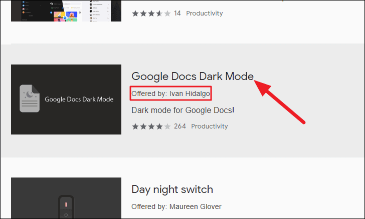 If you prefer to enable dark mode specifically for Google Docs, you can use the 'Google Docs Dark Mode' extension. This method allows you to toggle dark mode for Google Docs without affecting other websites.