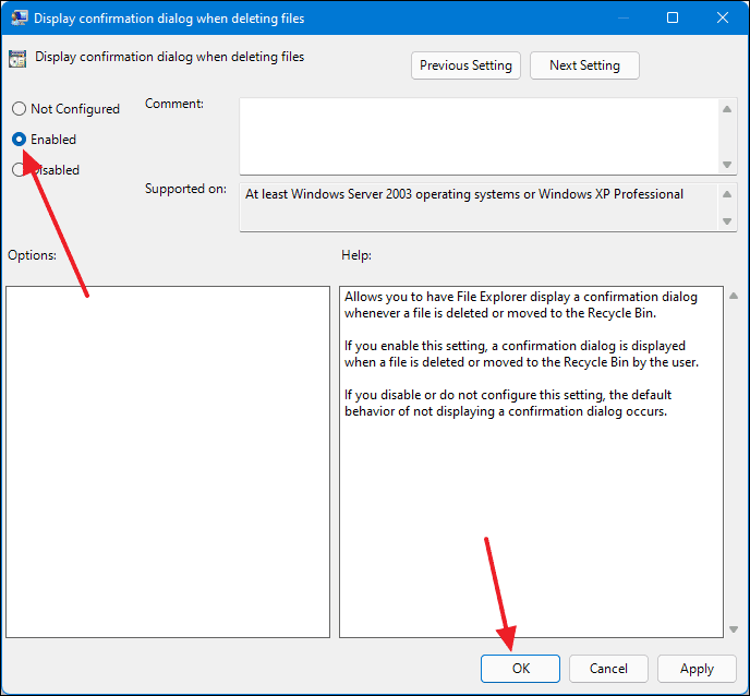 Now, the delete confirmation dialog is enabled on your Windows 11 system.