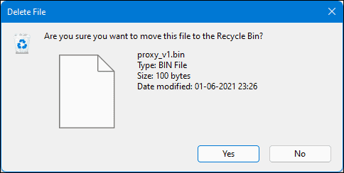 Now, whenever you attempt to delete a file, a confirmation dialog will appear asking if you're sure you want to proceed.