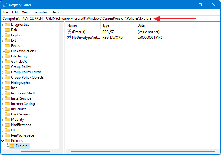 HKEY_CURRENT_USER\Software\Microsoft\Windows\CurrentVersion\Policies\Explorer