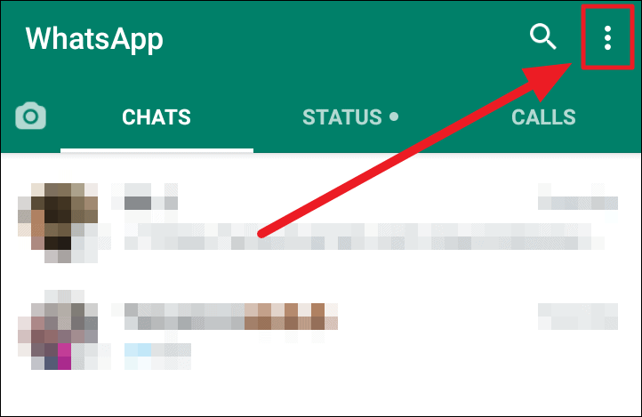 Launch WhatsApp on your phone and tap the ellipsis icon (three vertical dots) at the top right corner of the screen.