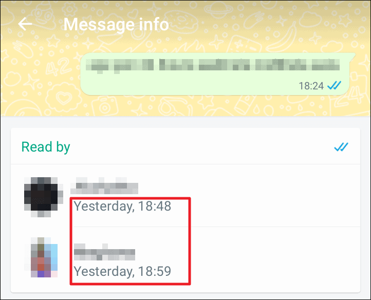 You will next see the ‘Read by’ and ‘Delivered to’ list to the right, listing those who have received and seen your messages and those who have only received them respectively.