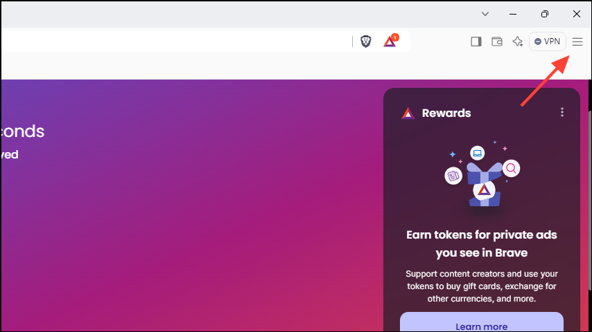 - Open the Brave browser and click on the hamburger menu at the top right.