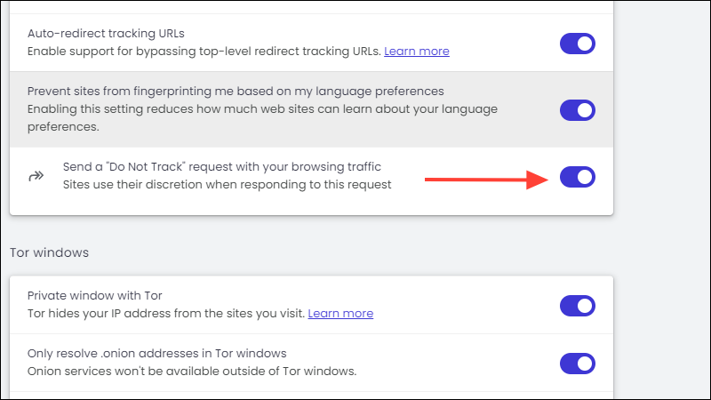 - You can always turn off the 'Do Not Track' feature at any time by going into the browser settings and toggling it off from the Privacy and Security page.