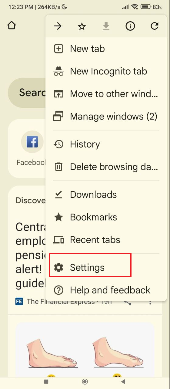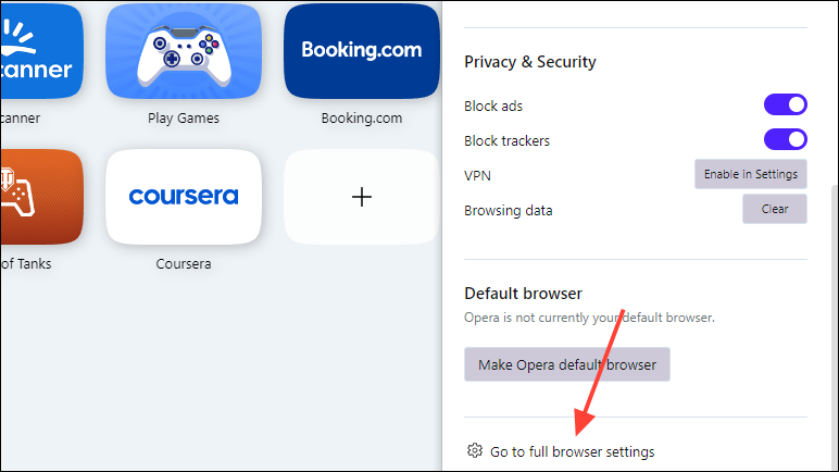 - When the dropdown menu appears, scroll down and click on 'Go to full browser settings'.