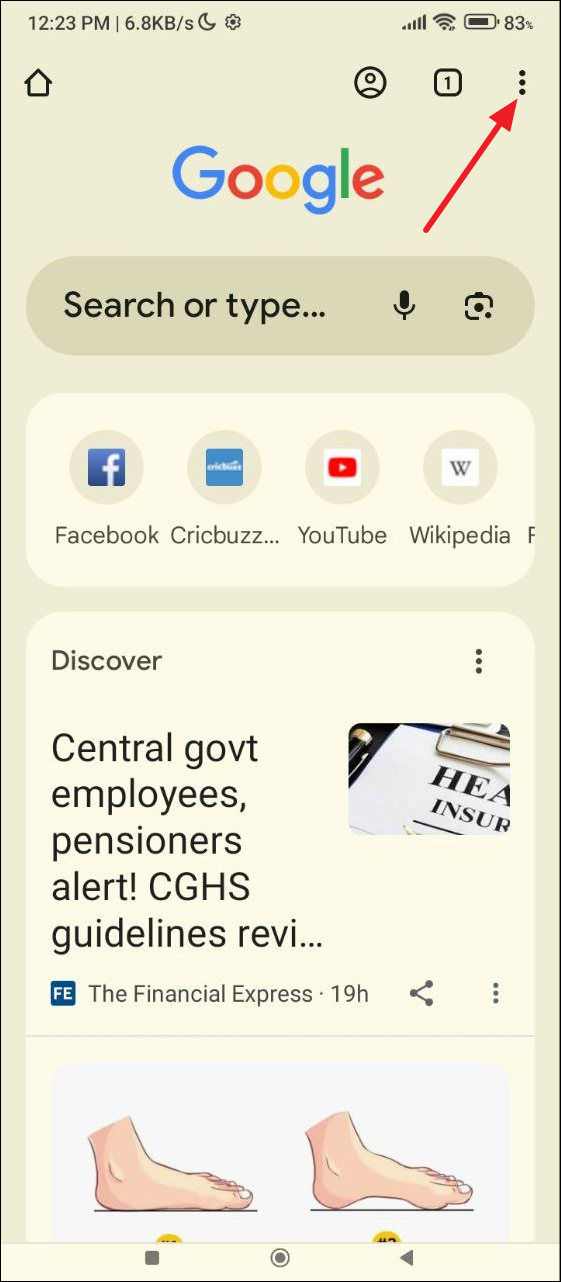 - On a mobile device, open Chrome and tap on the three dots in the top right.