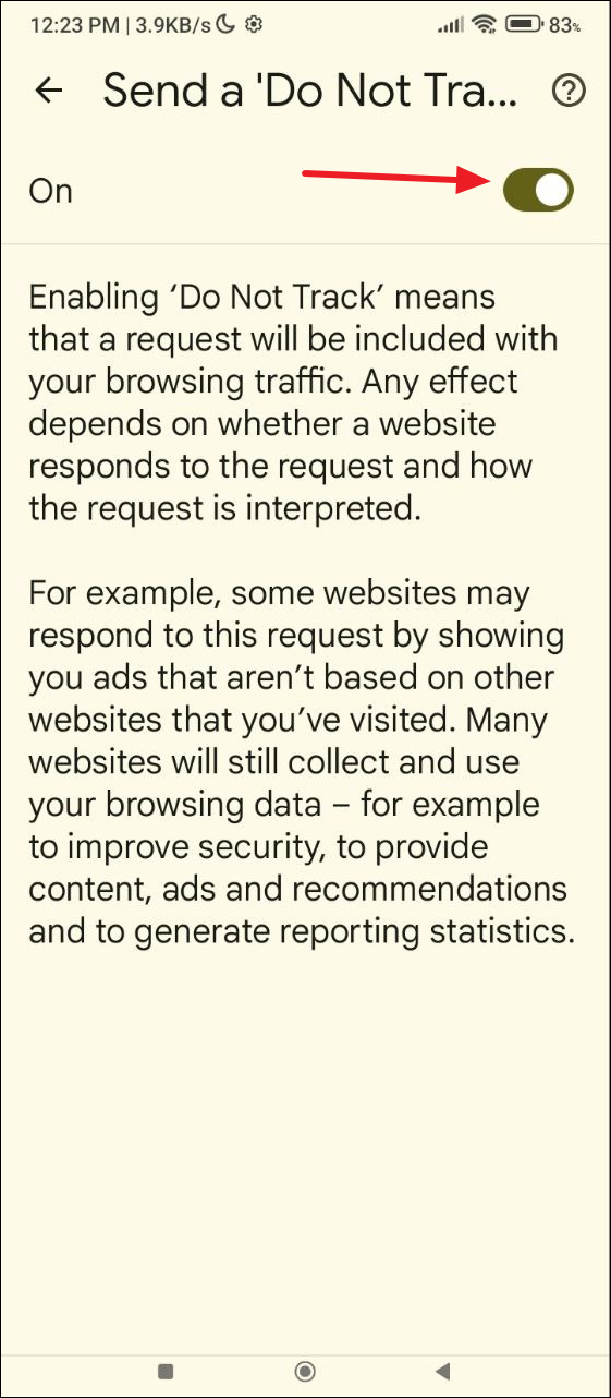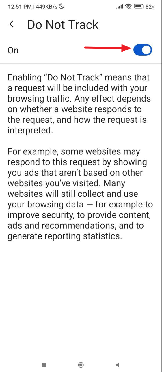 - Lastly, tap on the toggle on the Do Not Track page to enable it.