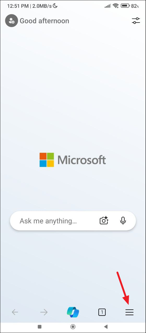 - Open the Edge browser on your mobile and tap on the hamburger menu (three horizontal lines) in the bottom right.