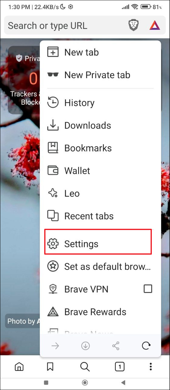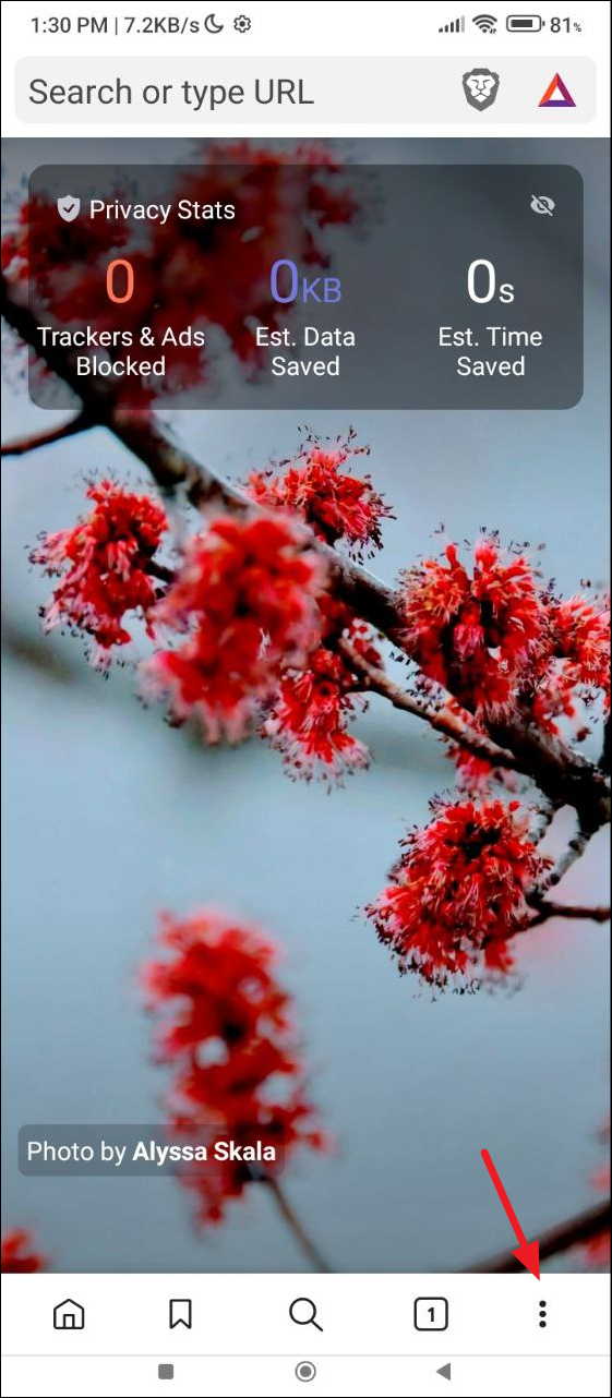 - On mobile, open the Brave browser and tap on the three dots at the bottom.