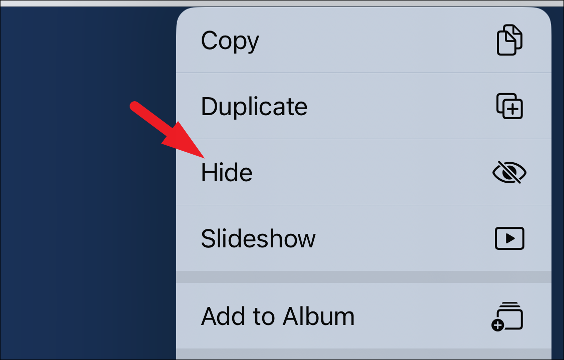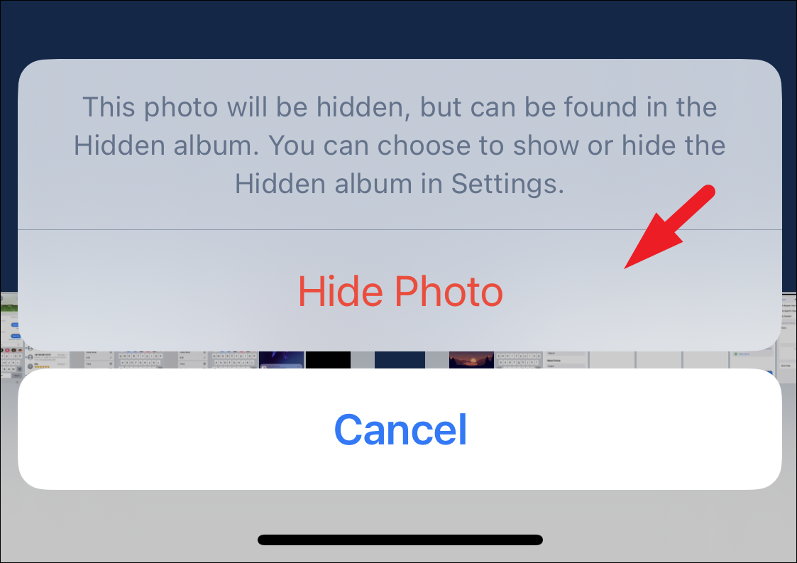 Tap on the ‘Hide Photo’ option from the prompt to move the photo to the hidden album.