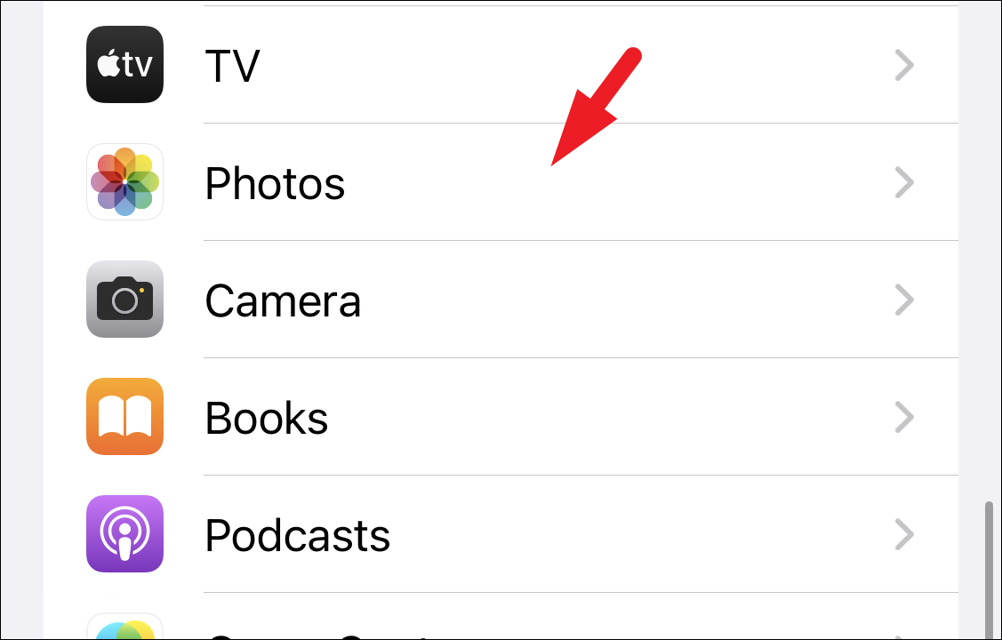 Next, scroll down to locate and tap on the ‘Photos’ tile from the list to proceed.