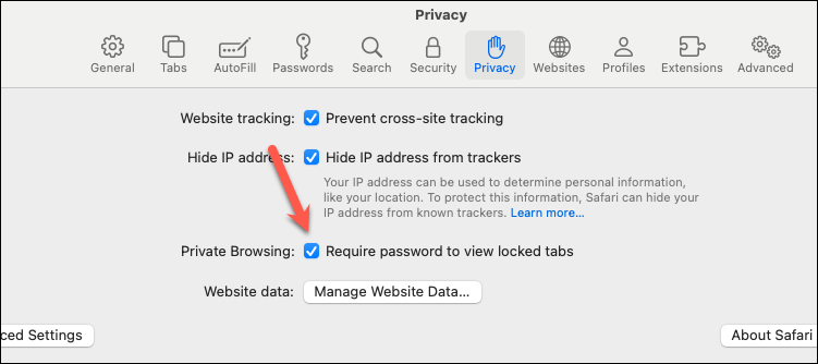 Step 4: Check the box next to Require Touch ID to view locked tabs or Require password to view locked tabs, depending on your Mac's capabilities.