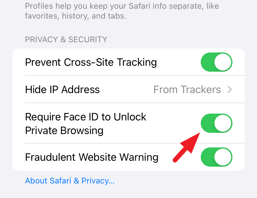 Step 3: Scroll to find the option Require Face ID to Unlock Private Browsing and toggle it on.