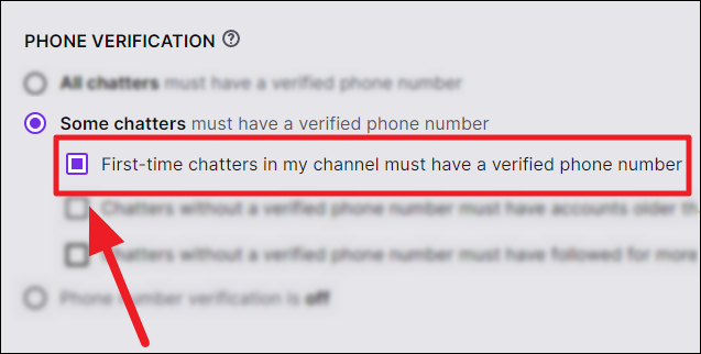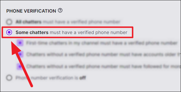 If you want only certain chatters to verify their phone number (or not), click the radio button in front of the ‘Some chatters must have a verified phone number’ option. All the criteria below this option are selected. But, you can deselect the options that don’t apply (any two) or keep all of them enabled.