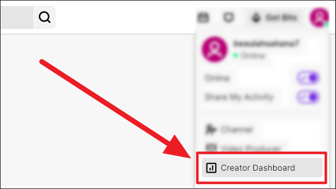 Select ‘Creator Dashboard’ from the upcoming menu.