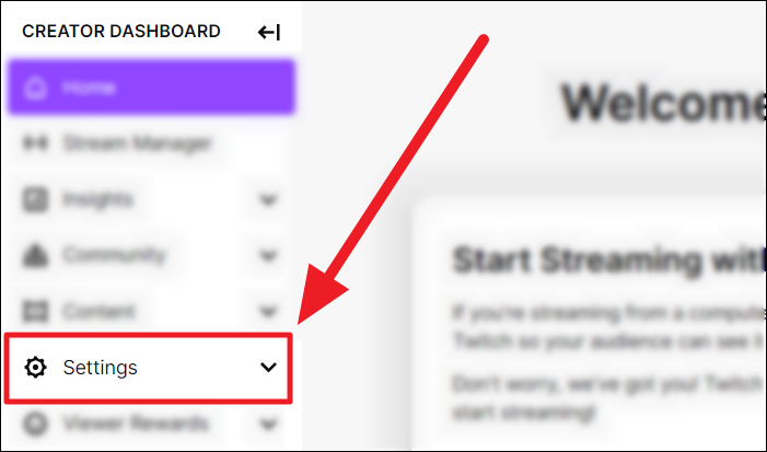 You will now redirect to your creator dashboard on your browser. Click the ‘Settings’ drop-down box from the left list of options.