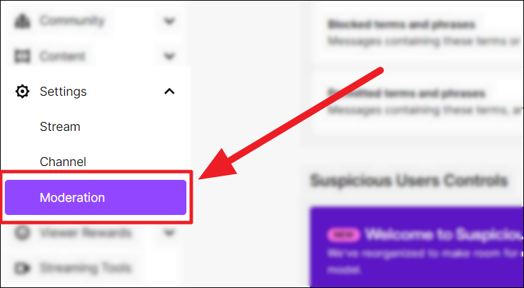 Choose ‘Moderation’ from the ‘Settings’ options.