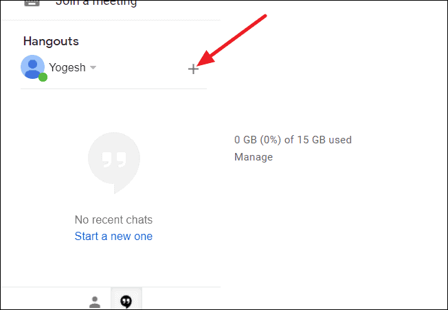 Step 1: Open your Gmail account and locate the 'Hangouts' section on the left sidebar. Click on the '+' button next to your name to add contacts.