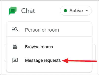Step 5: Instruct your contact to go to chat.google.com. They should click on the 'Find people and rooms' search box in the top left panel and select 'Message requests' from the menu.
