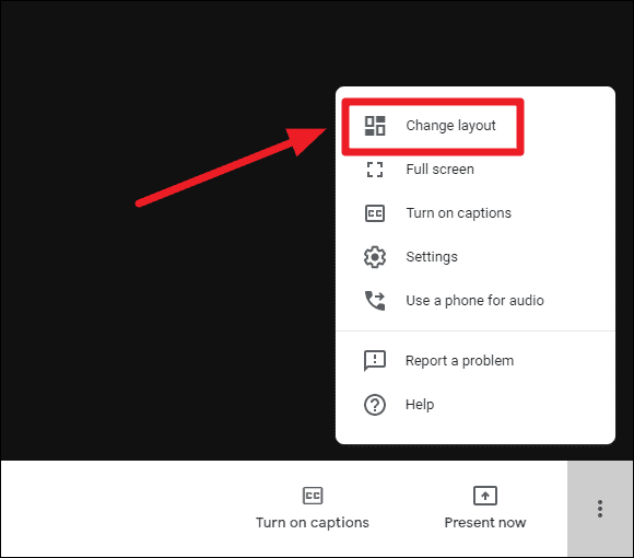 Step 3: From the menu that appears, select the 'Change layout' option to access different viewing layouts.