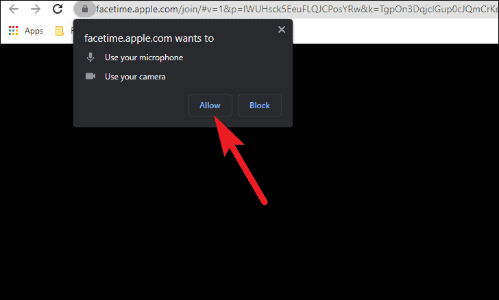 Next, FaceTime site would require your permission to access the camera and microphone. Click on ‘Allow’ to give the required permissions.