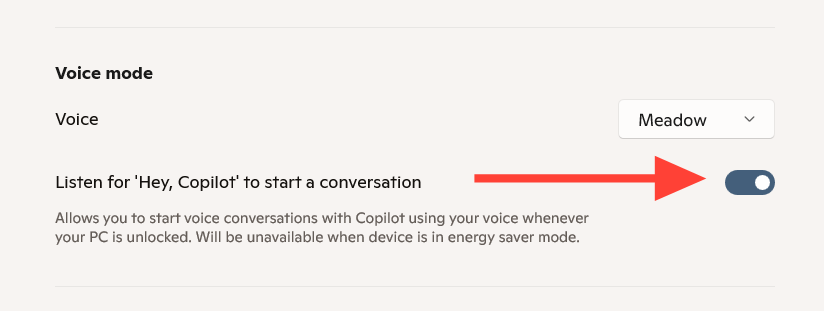 Step 1: Open Copilot > Account > Settings > Voice mode and confirm “Listen for ‘Hey, Copilot’” is On. If you don’t see the toggle, update the Copilot app from Microsoft Store and try again.