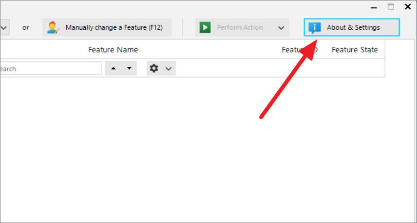 If you already know the Feature ID of the hidden feature you want to modify, you can click on the 'Manually change a Feature (F12)' button or simply press F12 on your keyboard.