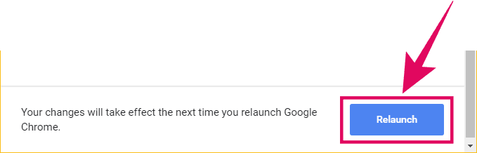After selecting “Enabled” for the QUIC protocol feature, a “Relaunch” button will appear at the bottom of the screen. Click on it to relaunch Chrome Canary and enable QUIC protocol.