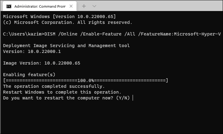 After your computer restarts, Hyper-V will be enabled and ready to use.