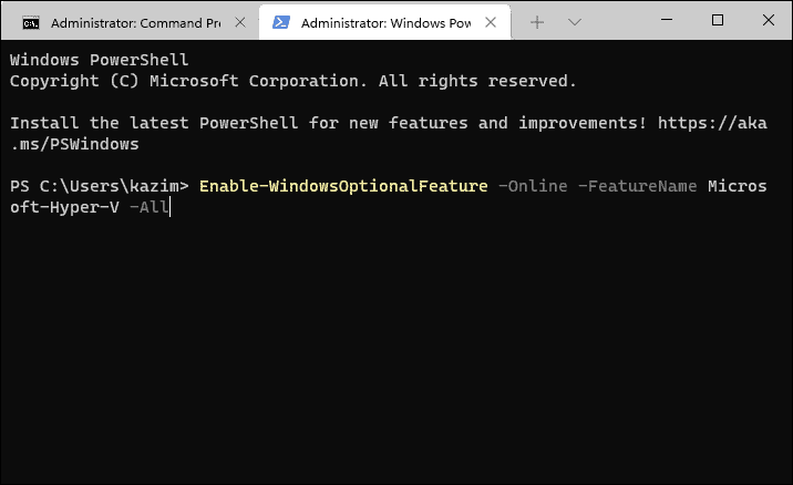 You can also use Windows PowerShell to enable Hyper-V through a simple command.